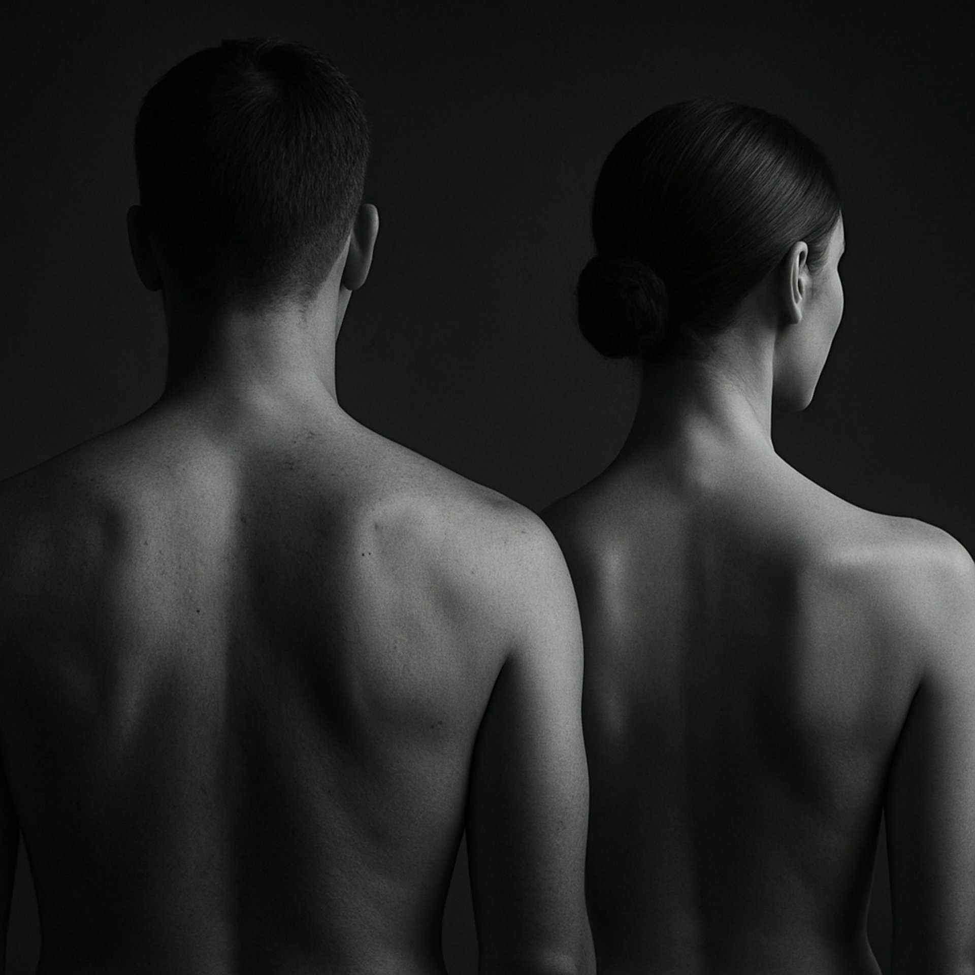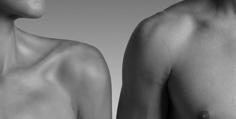 Before and after comparison showing clear, smooth skin following a full body laser session.